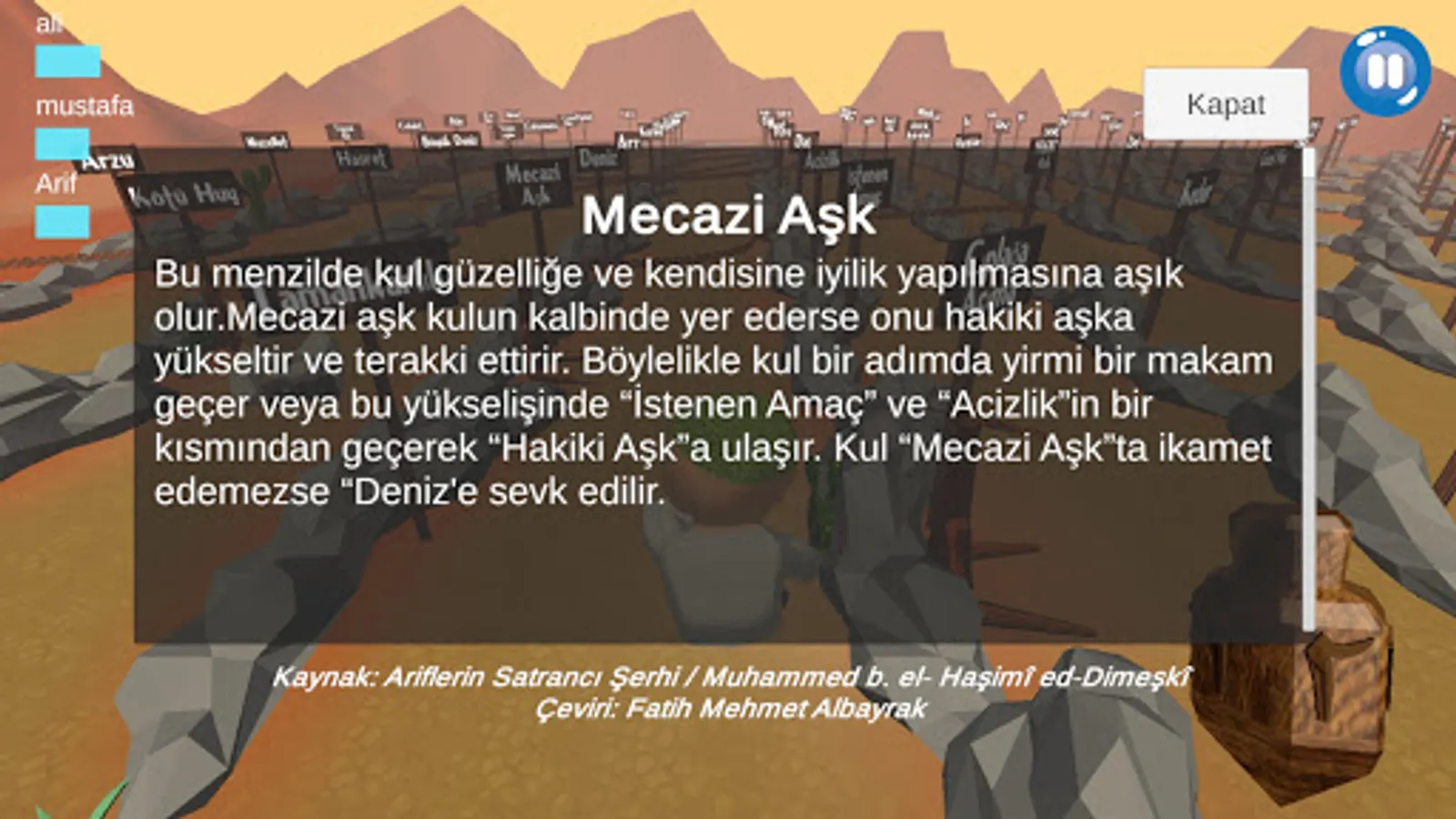 Visal: It represents meeting with Allah. Reaching Visa ends the game.