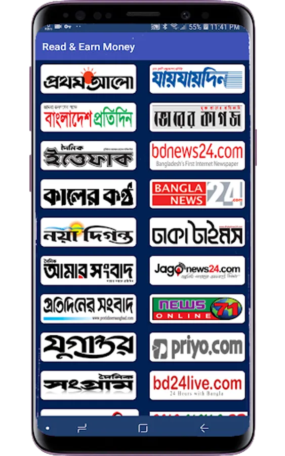 Prothom Alo, Manabjamin, Naya Diganta, Ittefaq, Amar Desh, Bangladesh Protidin, Kaler Kantha, Jugantar, Samakal, Inqilab, Vorer Kagoj, JaiJaiDin, Janakantha, Vorer Pata, Manab Kantha, Sanbad, Sangram, Bortoman, Dinkal, Sokaler Khobor, Amader Somoy, Bonik barta, Vorer Dak, Dinik Janata, Dainik Destiny, Daily Amader Orthoneeti, Alokito Bangladesh,Daily Bangladesh Shomoy and more, Read Newspaper & Earn Money