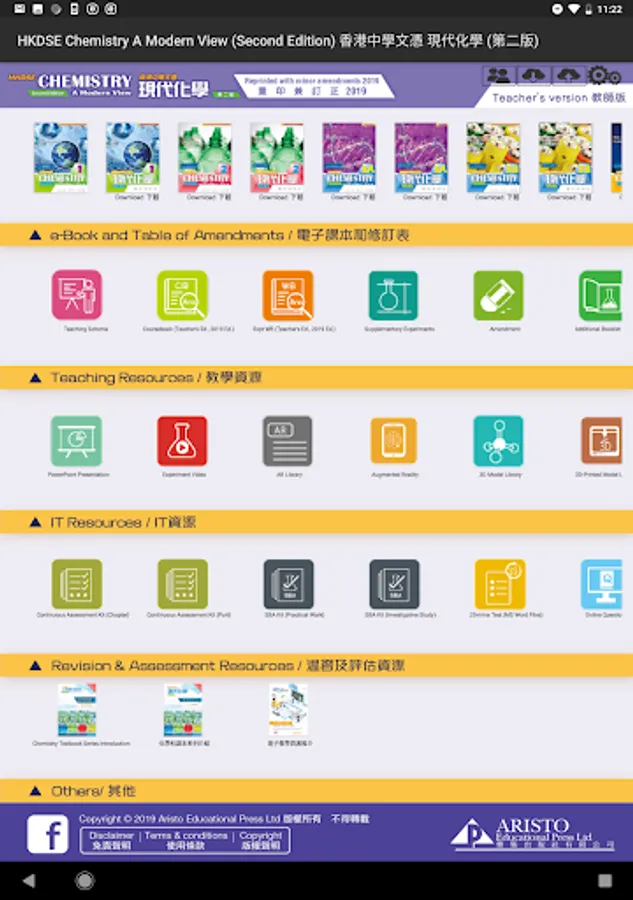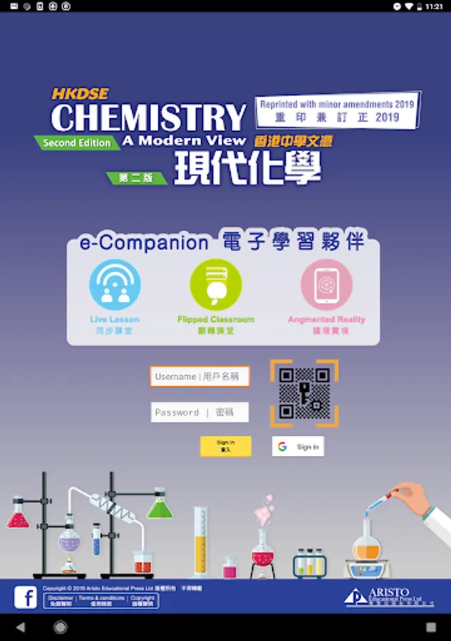 "Aristo Chem - e-Companion" features the electronic resources for the textbook series "HKDSE Chemistry A Modern View (Second Edition, Reprinted with minor