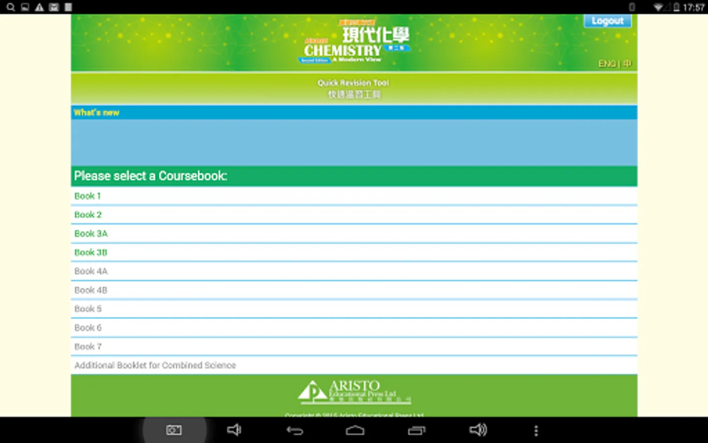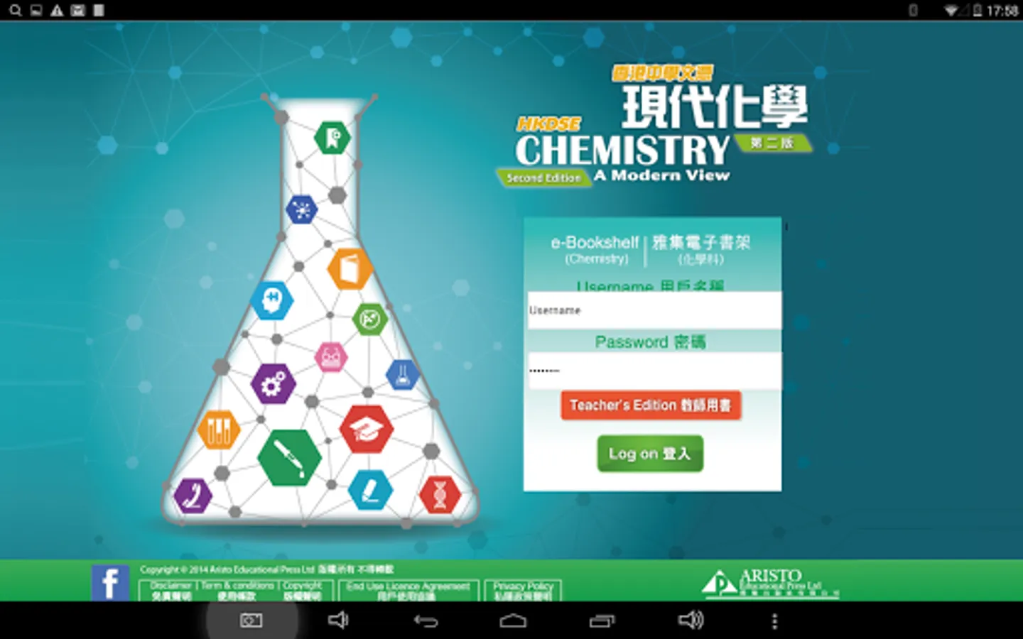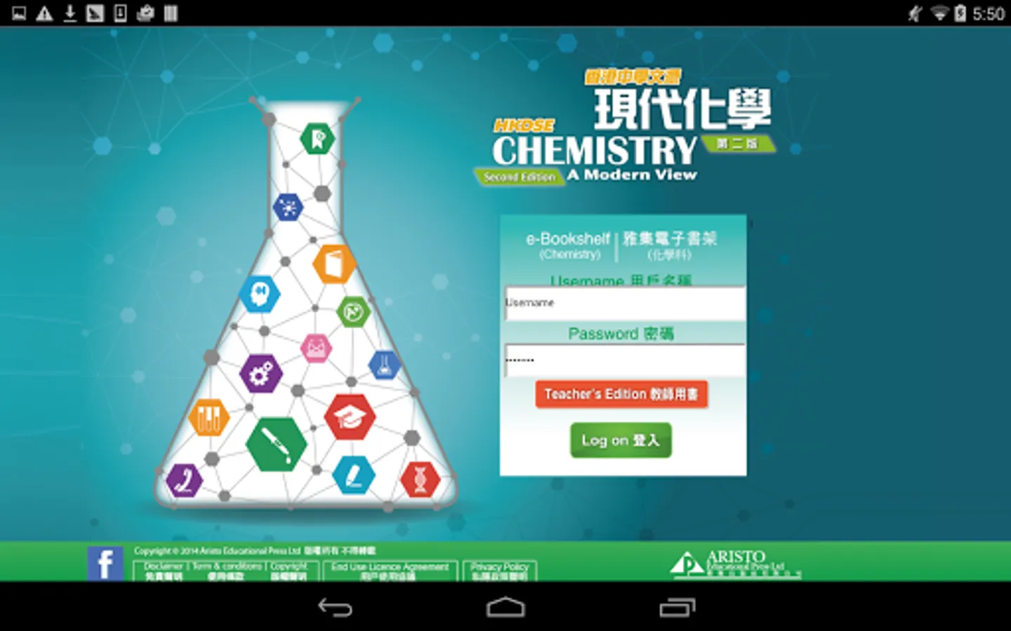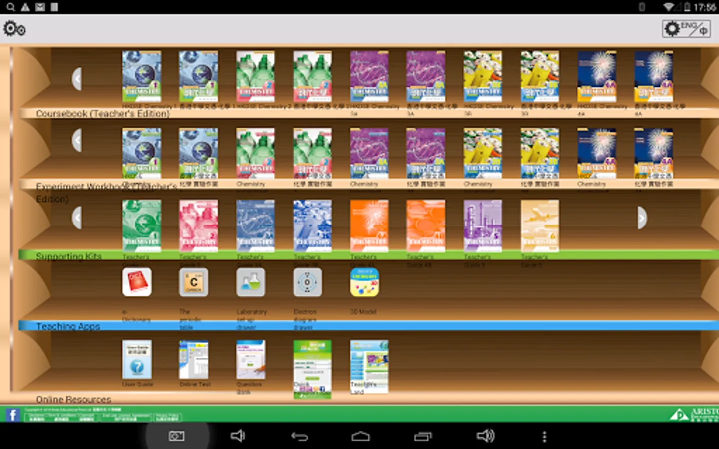 “Aristo e-Bookshelf (Chemistry) – Teacher’s Edition” features the electronic resources for the related printed textbook series “HKDSE CHEMISTRY – A Modern View” (Second Edition). The e-Bookshelf provides an all-in-one platform for users to access the quality coursebooks, experiment workbooks, supporting kits, teaching apps and other online resources prepared by Aristo Educational Press Ltd.