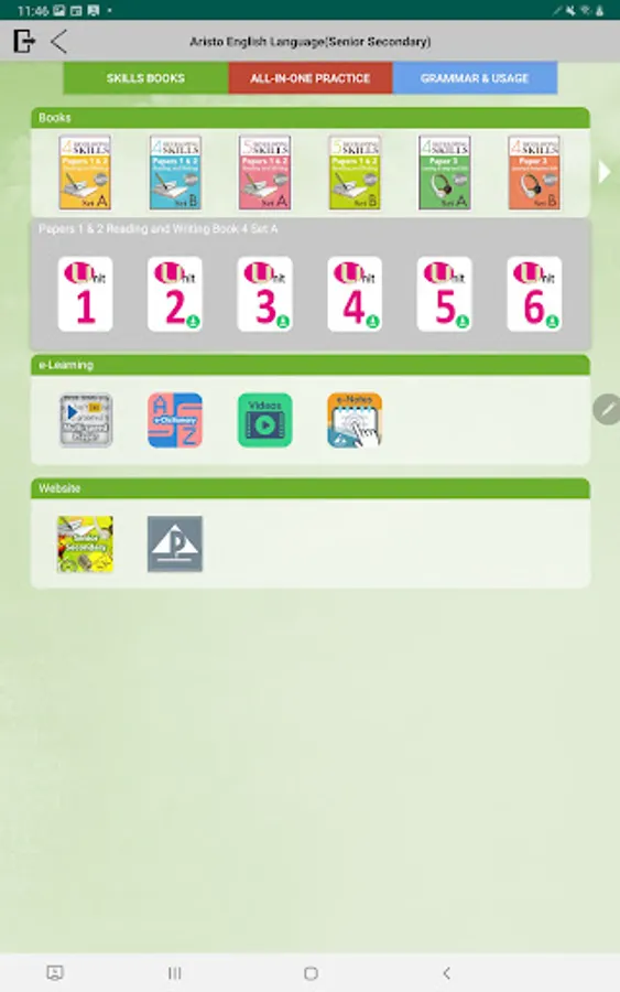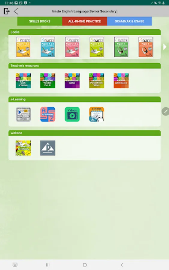 ‘Aristo e-Bookshelf for Senior Secondary English Language’ features the electronic resources for Aristo’s Developing Skills for HKDSE Skills Books, ALL-IN-ONE Practice and Grammar & Usage series. From this all-new platform, teachers can access e-books of these series with answer-checking functions, live lesson support, supplementary teaching materials and other relevant online resources.