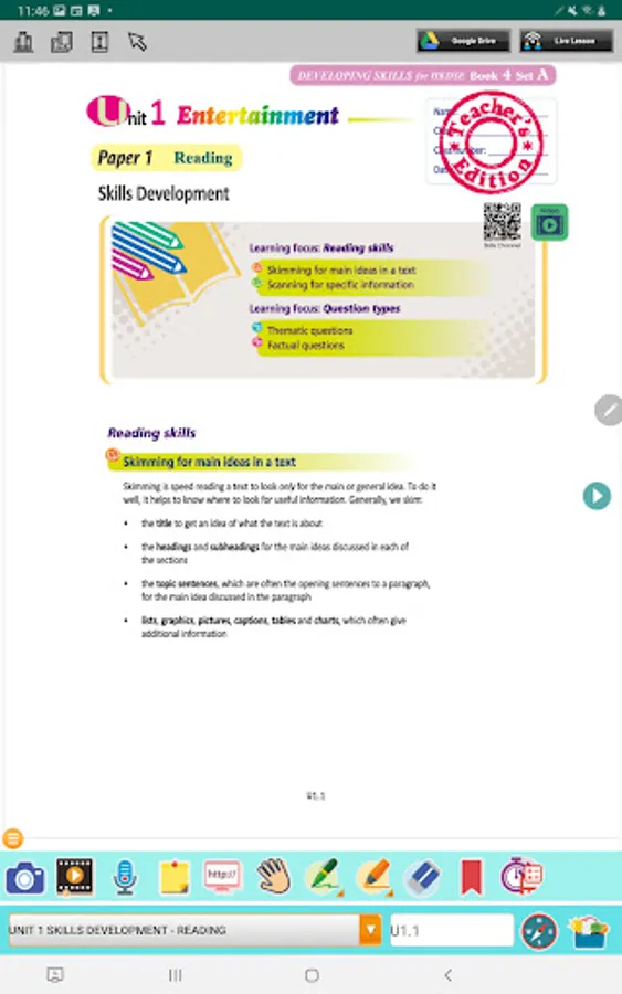 The built-in e-textbook of this app provides a variety of tools to support teaching, including adding and saving annotations, showing and hiding individual or all answers on the same page, viewing different pages in a book in various split-view modes, and so on. Teachers can also use ‘Live Lesson’ to interact with students in real time, save class notes to the cloud drive, and utilize online resources for distance learning and self-study.