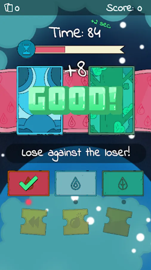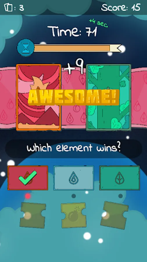 Learn the basic elements of nature. Keep in mind, who beats who to win. If you are able to solve the logic puzzle before the set time limit, you are provided with specific additional benefits which will help you to climb the ladder towards the title of Lord of the global leadership board.