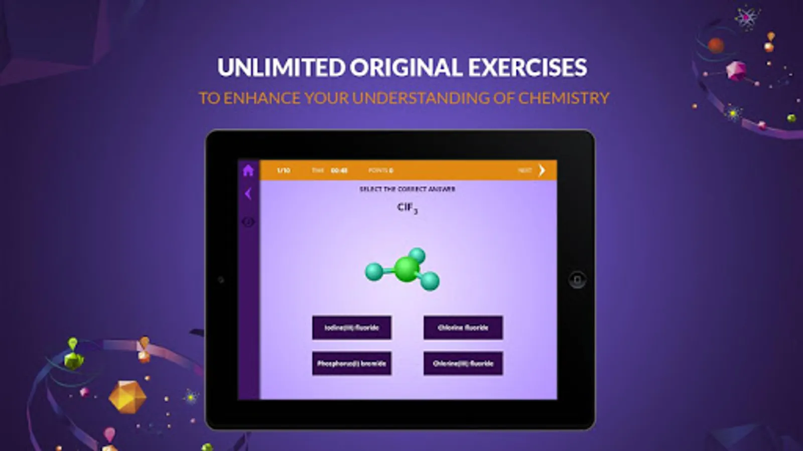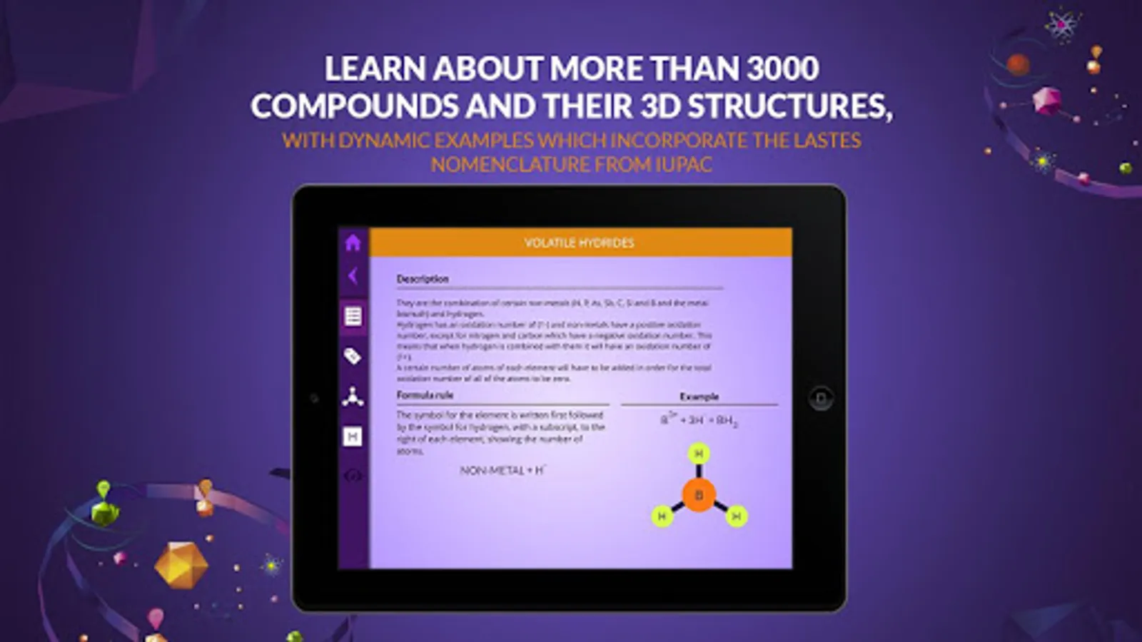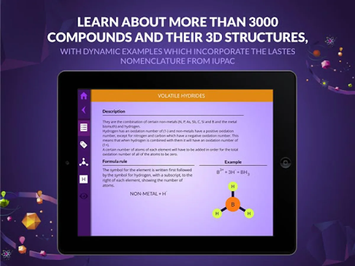 ● Chemistry makes it possible for students to useAugmented Reality to observe molecules in 3D and move them to their desktop. The visual presentation of the subject matter makes learning IUPAC nomenclature easy.