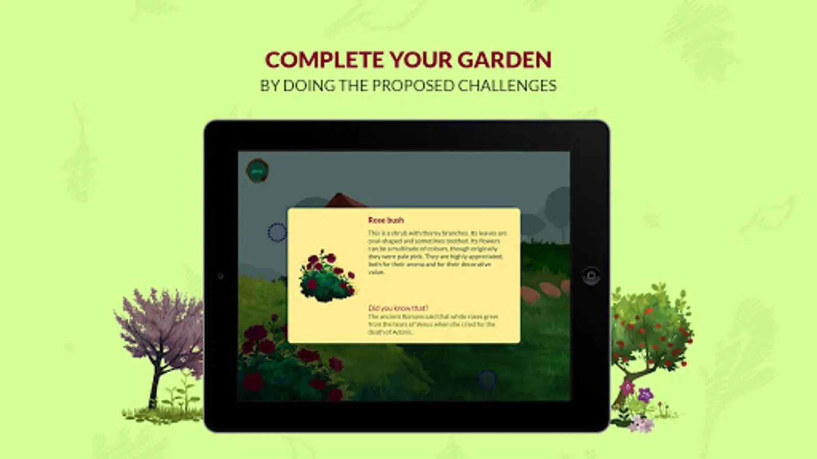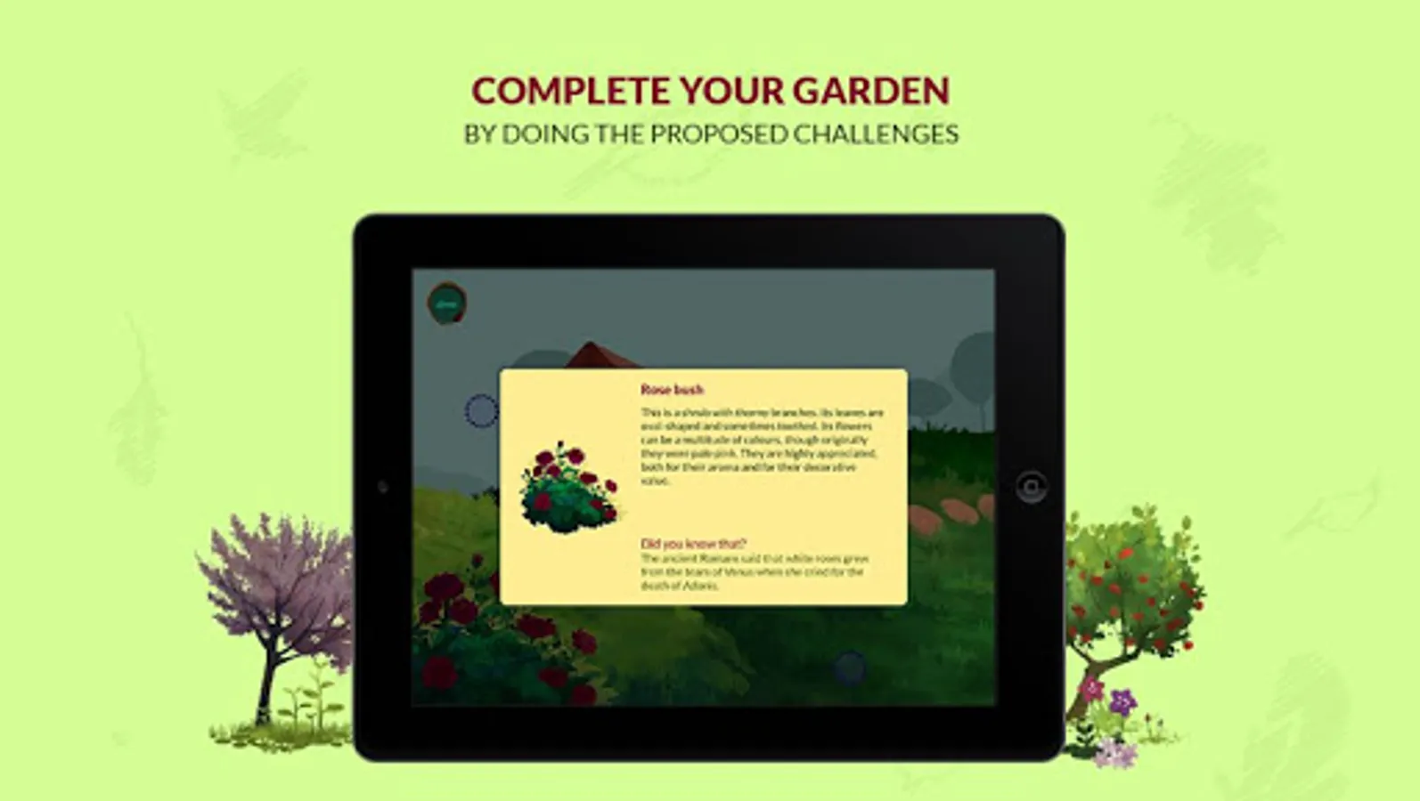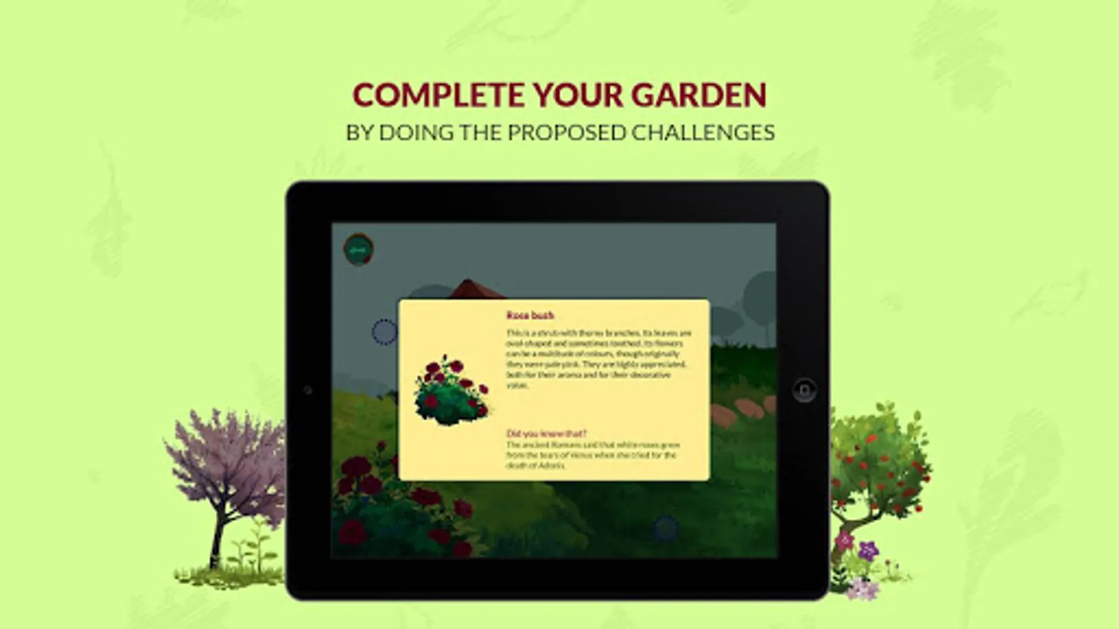 As you progress through the application, you'll get new plants to turn your garden into a lush one bursting with life. Tackle all the challenges to become a real expert!