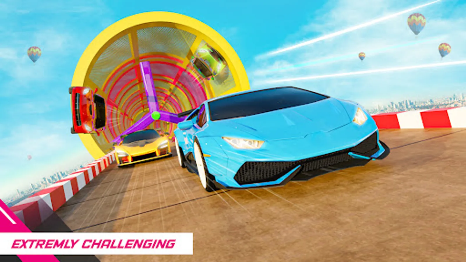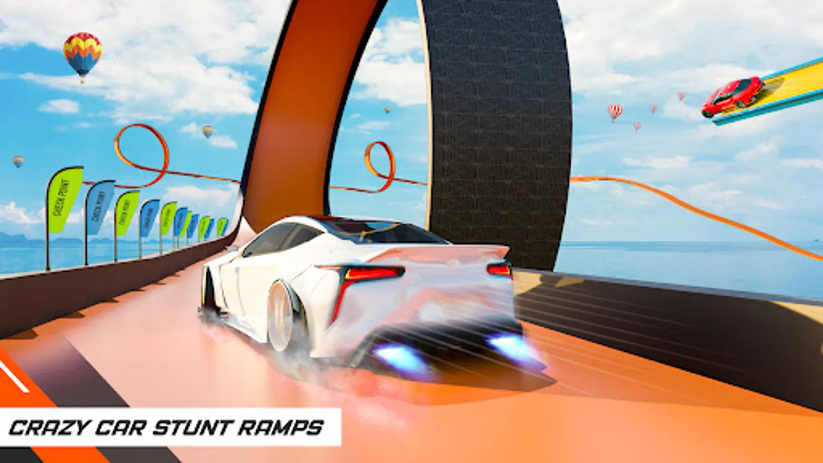 • Extreme ramp car racing levels with crazy car stunts and views.