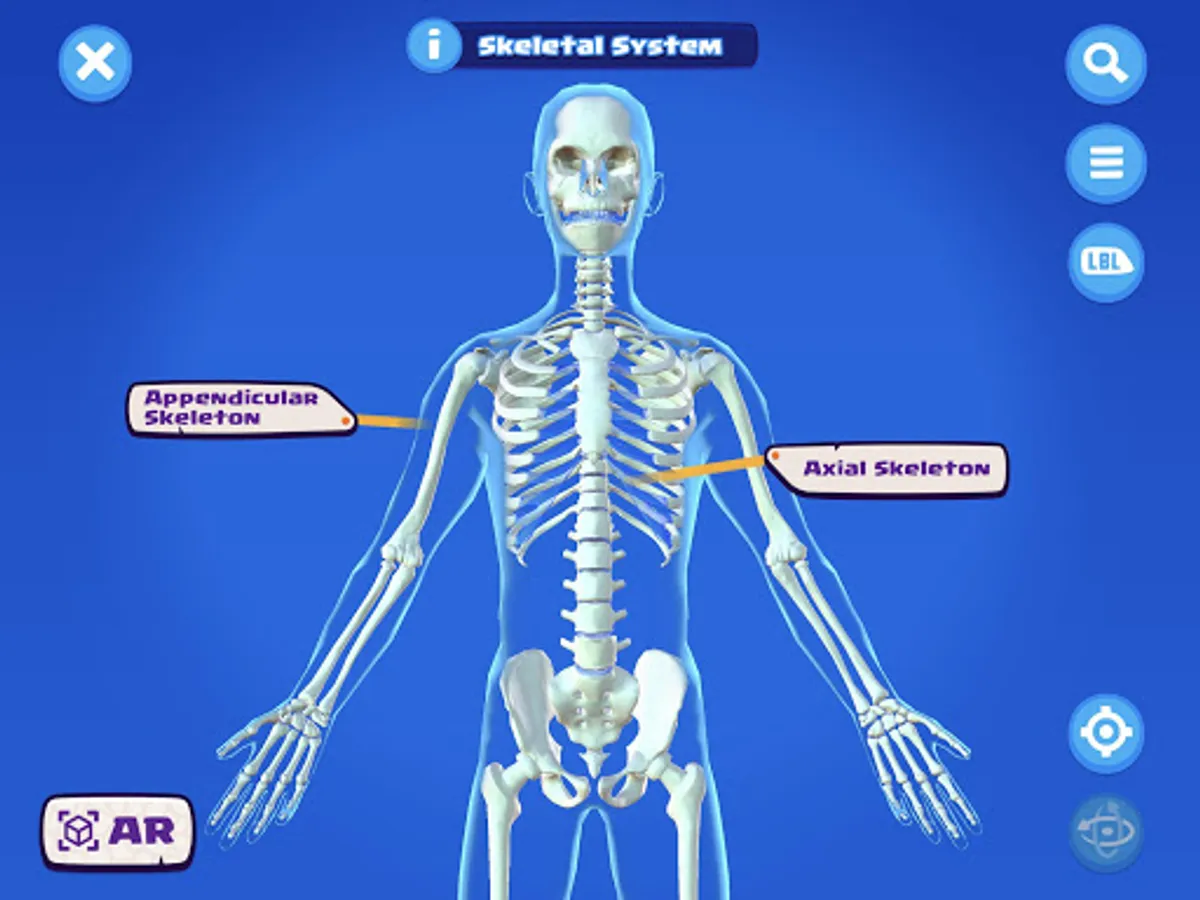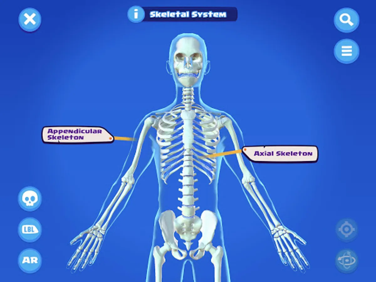 Explore - A visual 3D model of the human skeleton that let’s you find and learn about the bones in the body. Use your touchscreen to tap on bones to find out more. If you know the name of the bone, you can use the search feature to find it too. For Augmented Reality compatible devices, you can even place the skeleton in the real world!