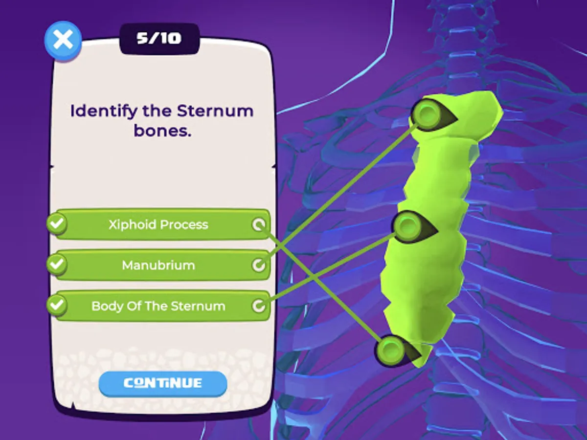 Bone Hunter - See how long of a streak you can build finding the correct bone. Test yourself on every bone in the body, or narrow it down to specific bone groups like the Hands, Legs, or Cranium. Also playable in Augmented Reality!