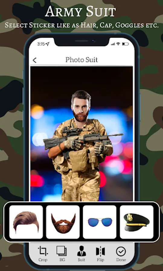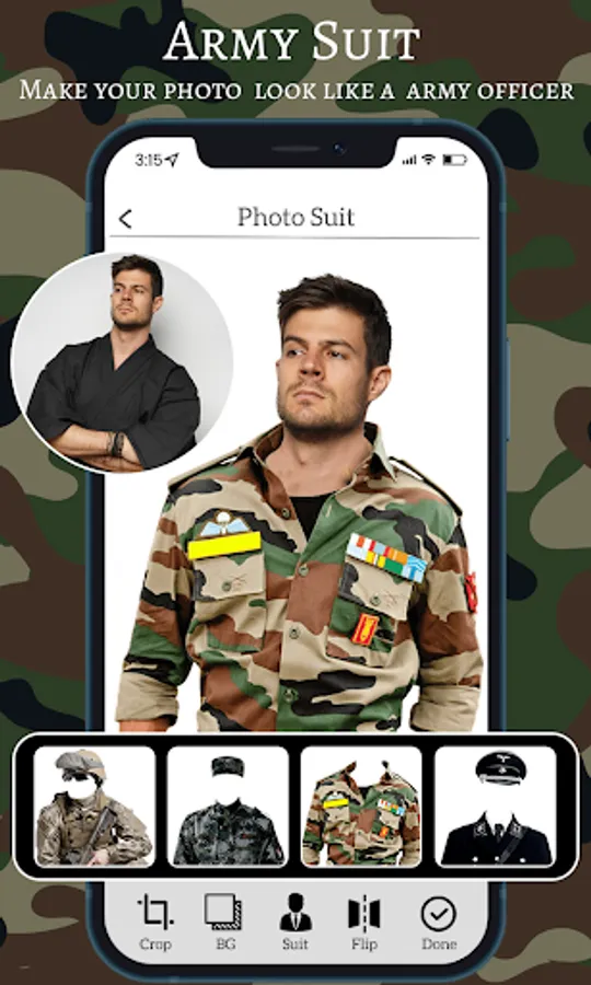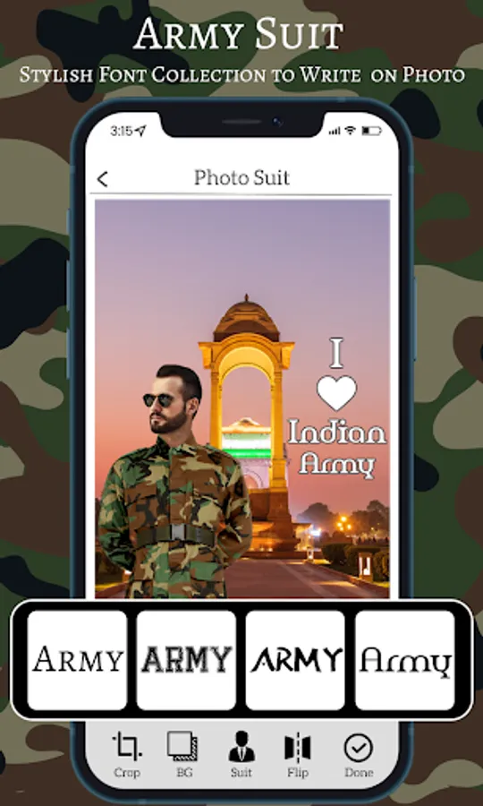 This Application allows you to wear army photo suits just for entertainment purpose. This army suit application is built only to show loyalty to your country.