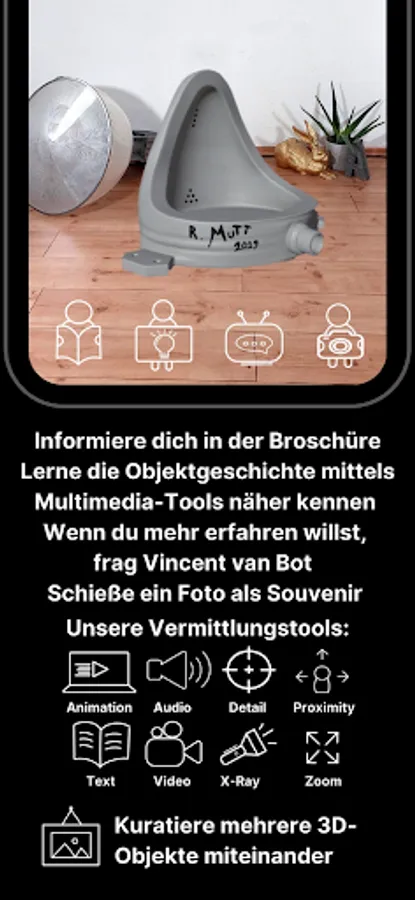 So Artvisity can prepare for the museum visit, guide through the gallery space on site or conserve the exhibition as a souvenir afterwards.