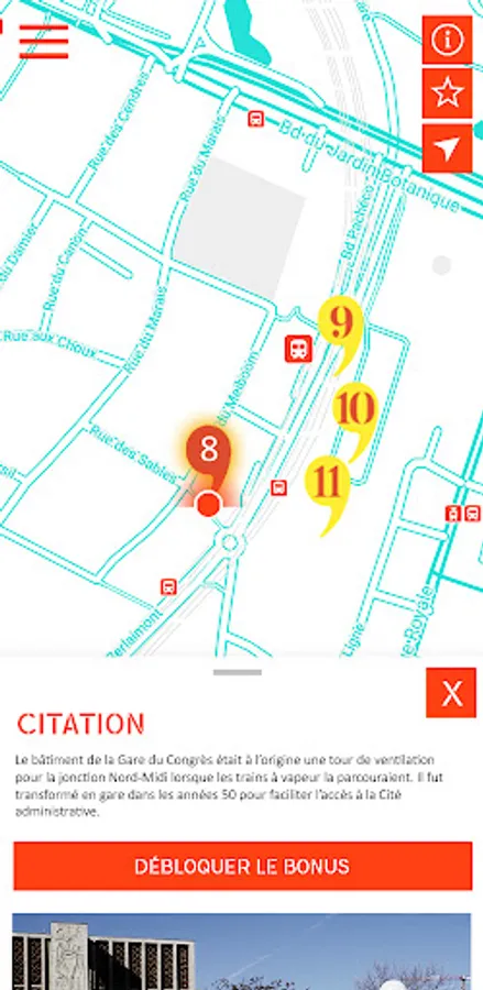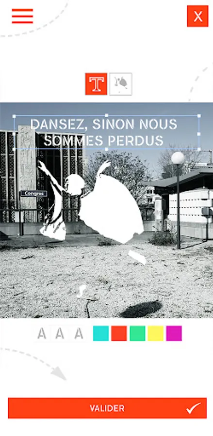 At each stage of the journey, a quote on dance appears on your smartphone, revealing a poetic, political or social dimension of this art of movement. Play with it in augmented reality and access the related bonus: archive videos, invitations to dance, discovery of the city and historical anecdotes...