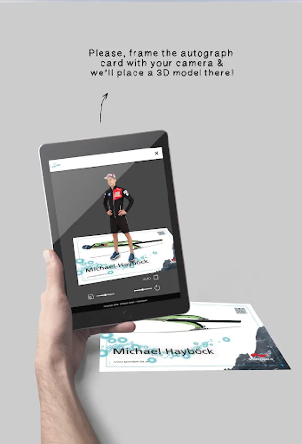 By simply pulling up the app and pointing the mobile devices toward the printed autograph card, the app shows different 3D models of the athlete.