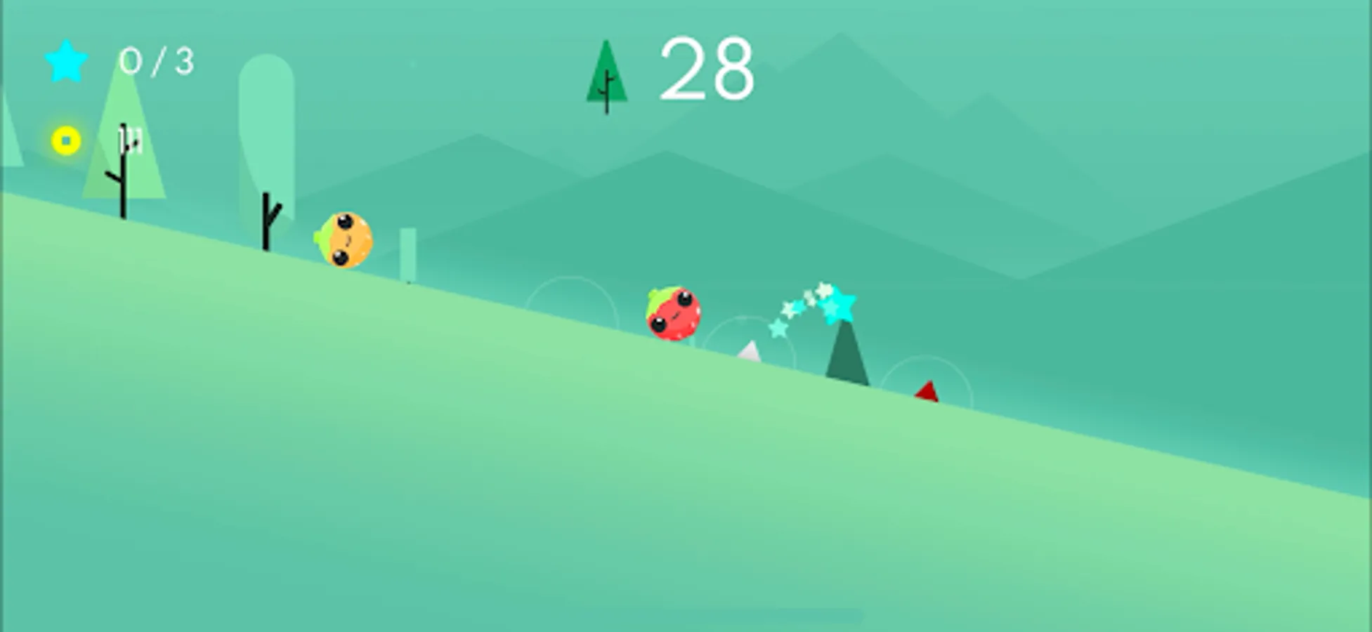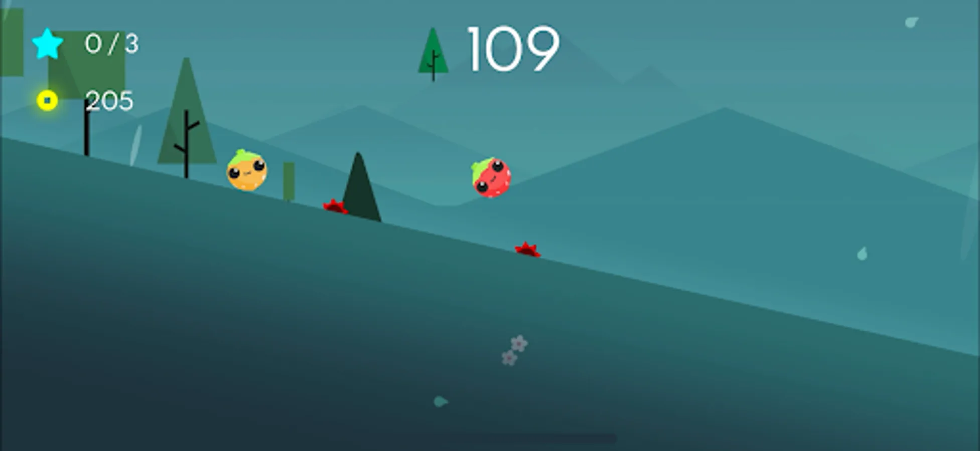 How far can you roll down DownHill Stumble without hitting the spikes? This is a simple tap-to-jump game where you control 2 fruit pet buddies at the same time. Many challenging obstacles and mind twisting spike patterns await you as you roll down Downhill Stumble.