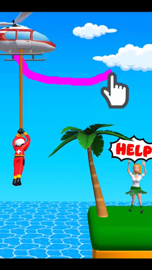 Draw lines and operate the helicopter to rescue people!