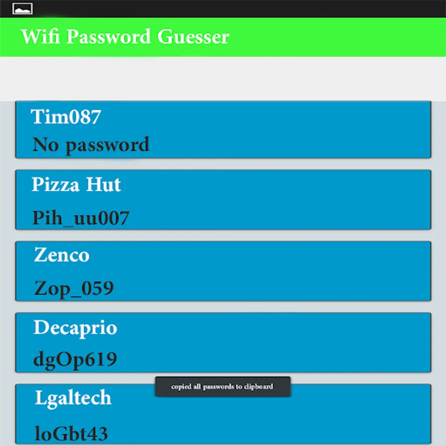 Find the password of public or shared wifi with Wifi Password Guesser & password finder app! This is not your typical password cracker or password hacker. Our app guess password and we don’t hack wifi password. You can safely use the shared wifi around you anywhere and anytime.