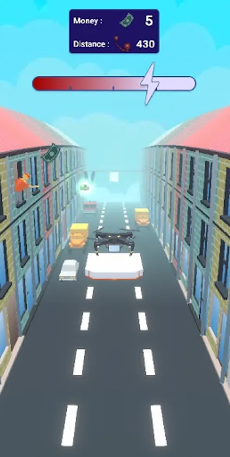 In this dynamic runner, you will have the opportunity to control a maneuverable drone! Deliver Pizza! Dodge obstacles and show how cool you are!