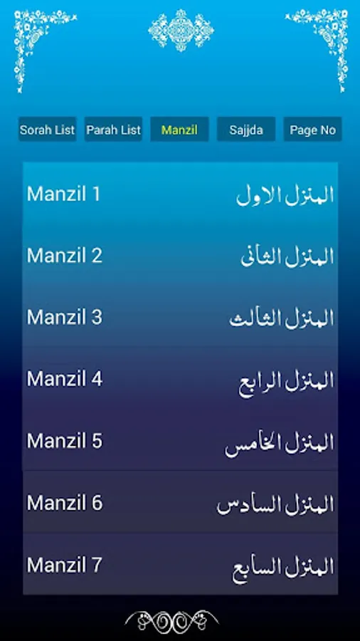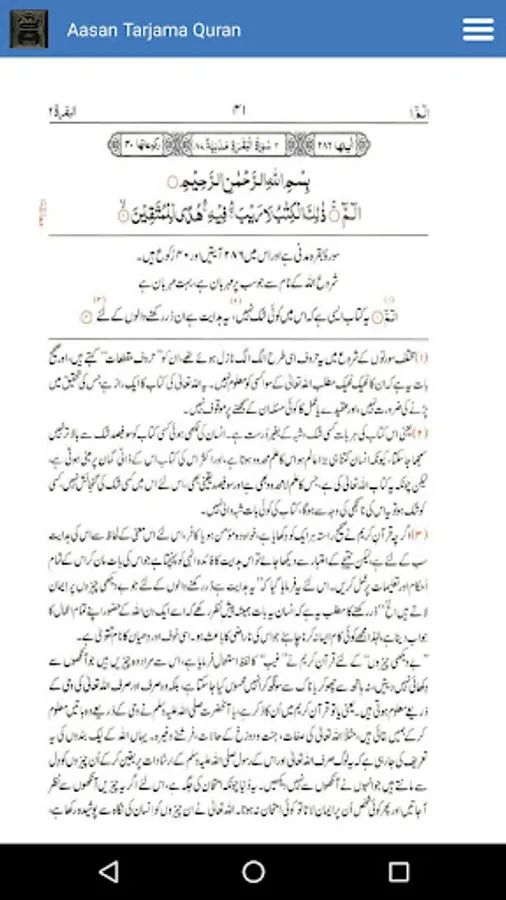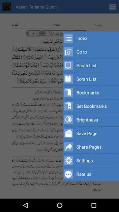 * Advanced navigation using Go to page number, Parah , Surah, Manzil and Sajda index helps to navigate easily.