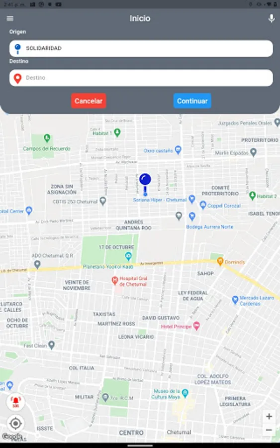One of the objectives of this application is to have a record of the operating partners, dealer partners and assistant partners that are registered through the various unions that may be active in a city, so that when users request a service , the application provides the cost that said service will have, to avoid abuse in the application of the rates or prices approved according to the tabulator published by the same union or the mobility and transportation authority of the city according to the zones of origin and destination areas.