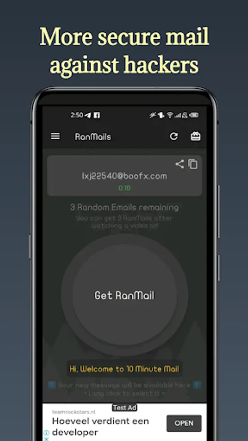 It is an application that will create a temporary email for you to keep your email clean and the domains are brand new and you can create a new email anytime with one click