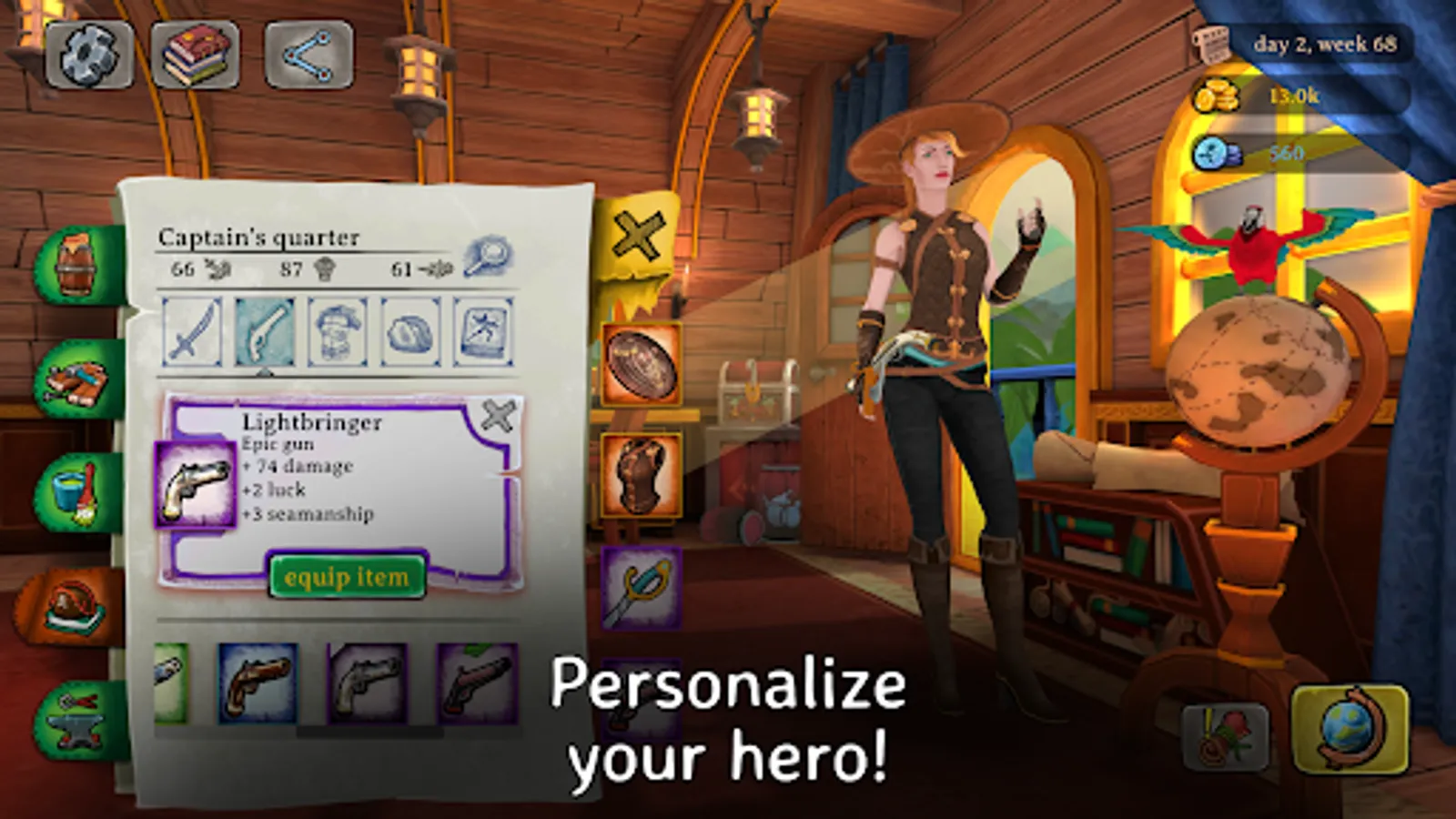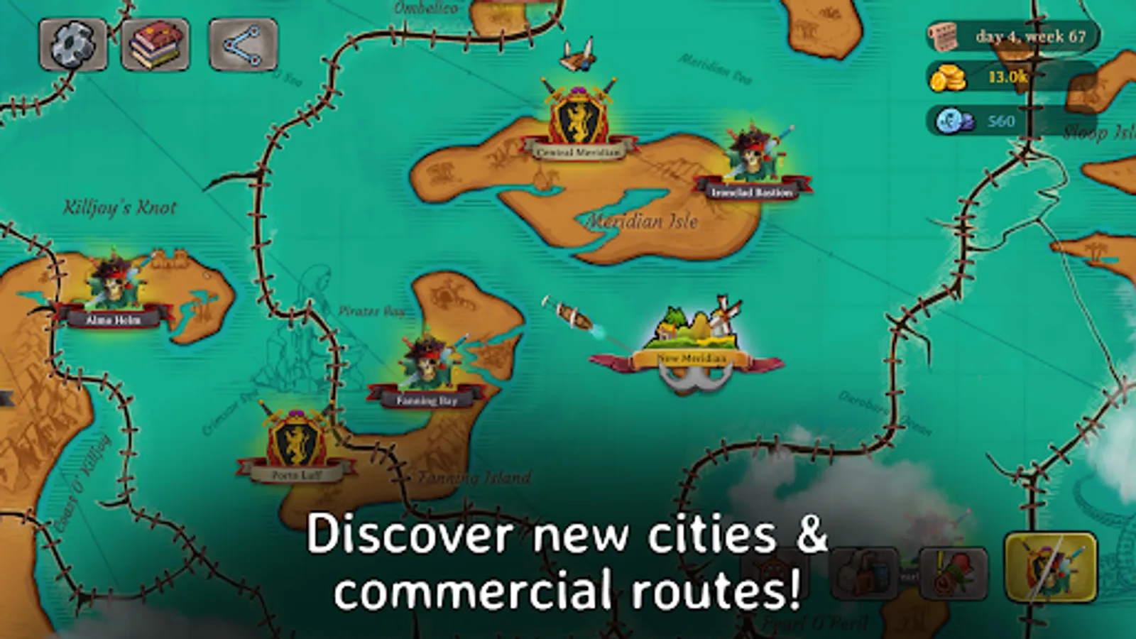 ◆ This fantasy adventure RPG also requires you to take good care of your ship so that you can travel the seas and withstand hazardous weather and raids. In one of the most interesting pirate games, be bold and smart to recruit crew, upgrade, customize and increase its cargo capacity to maximize your trading profits.