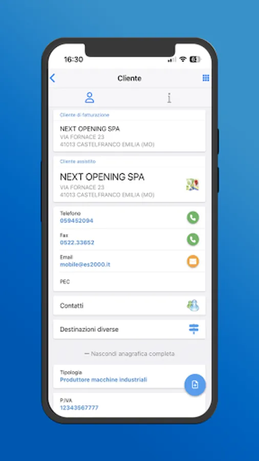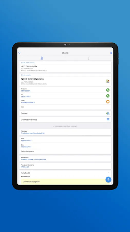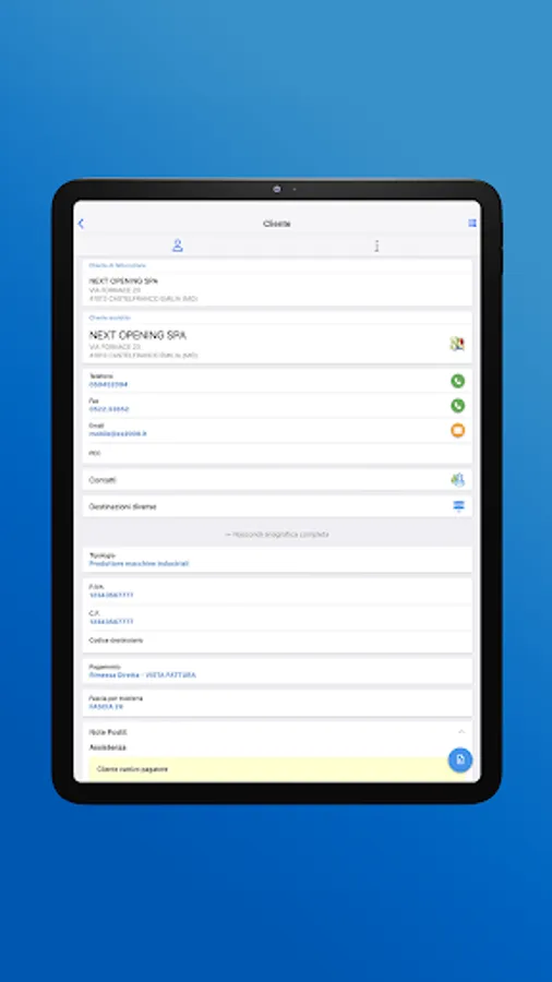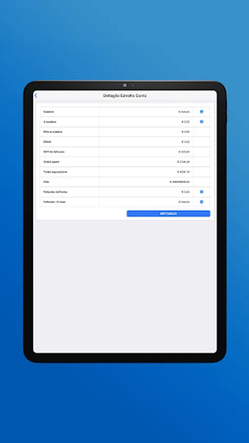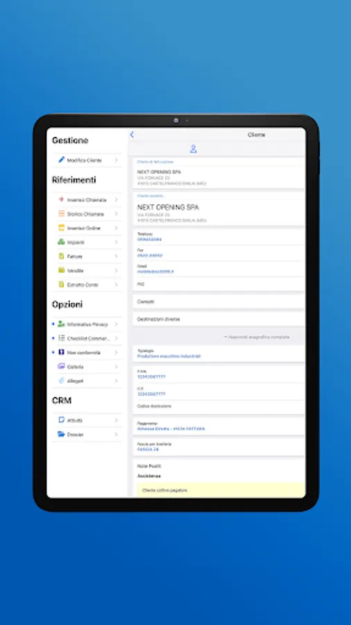 - Account statement, customer details, CRM activities, price lists, attempted sale
