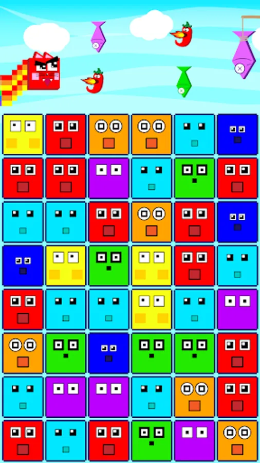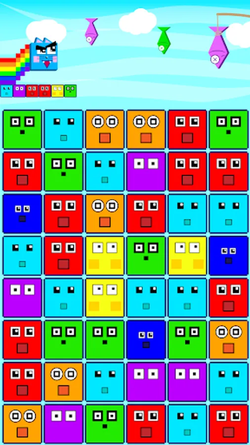 Fun and interesting game. You have to play for a cat, catch fish and at the same time collect squares of three in a row. How many points will you be able to earn?