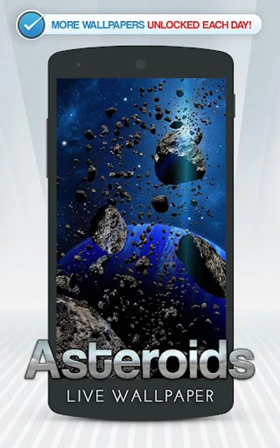 Go on a space journey with your new coolest Asteroids Live Wallpaper! Watch these huge celestial objects falling from the sky creating an amazing view! HD background images of huge asteroids colliding with the planet Earth will leave you breathless. You will experience a unique adventure in a galaxy far away, surrounded with millions of falling stars. These apocalyptic sights will mesmerize you and you will see how tiny we are compared to the immense outer space!