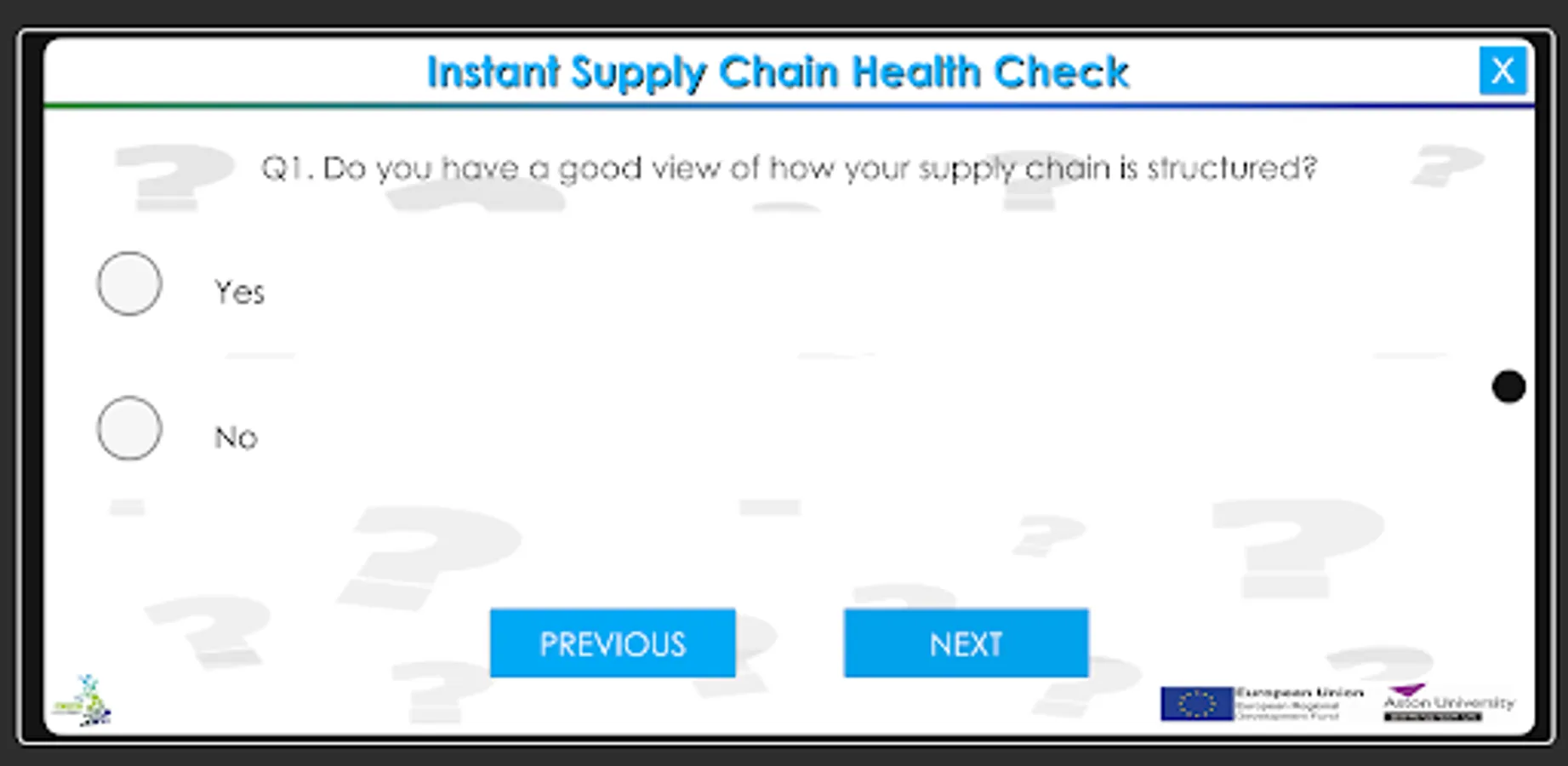 Spend 2-3 minutes of your time and take your first step in a journey towards supply chain assessment, capabilities and improvements, while operating in a turbulent environment, by using this app.