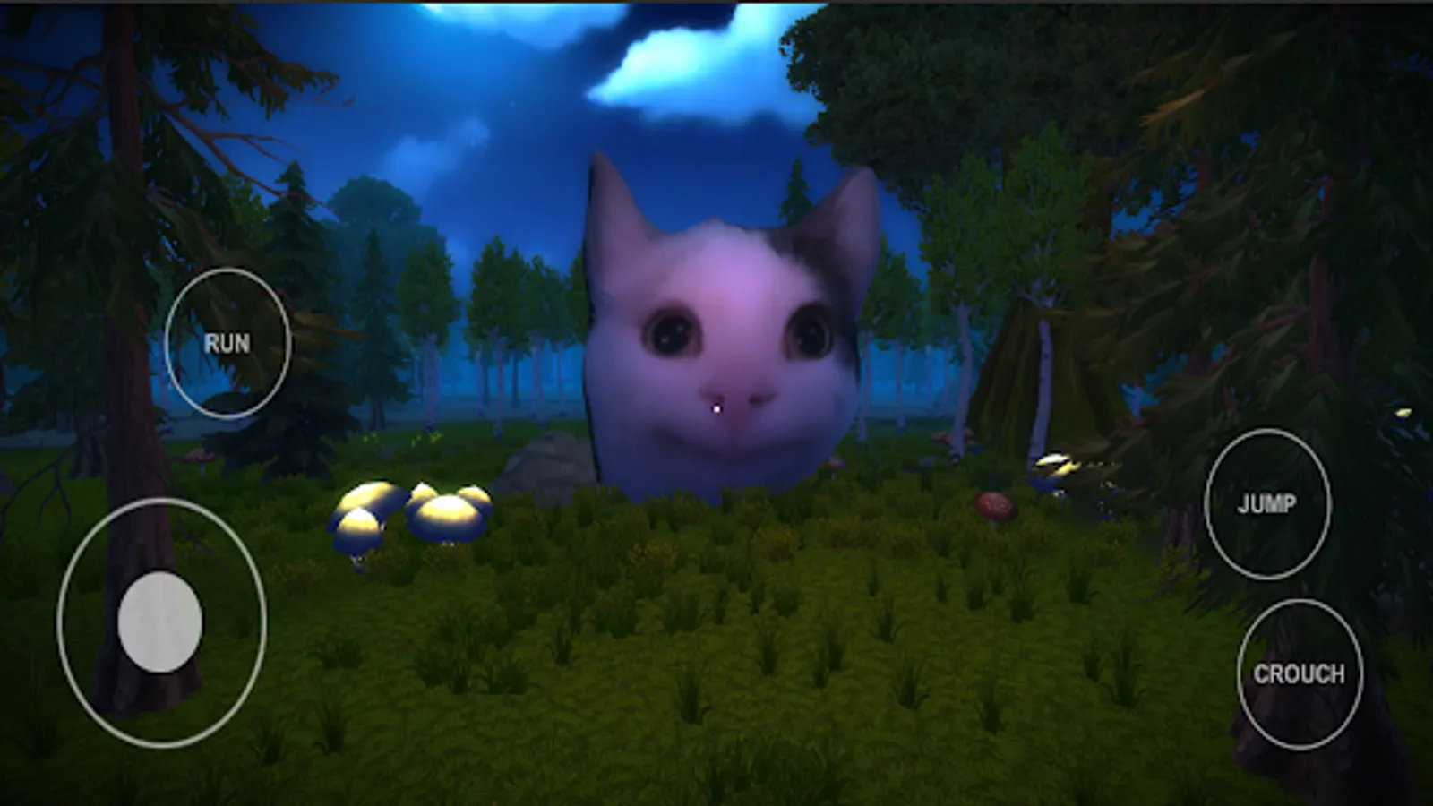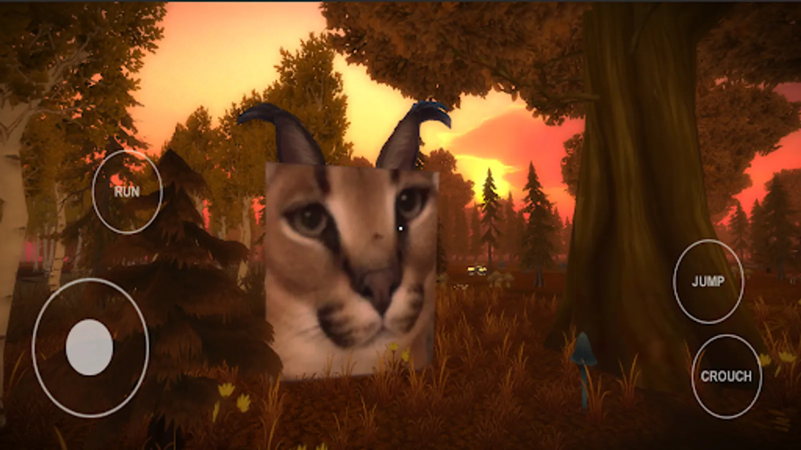 Choose one of three levels and explore the scary forest to find all the memes. It's the only way out. (the atmosphere in the game is similar to fnaf and granny). Every appearance of Big Floppa is a scary screamer and you have to escape from the monster.