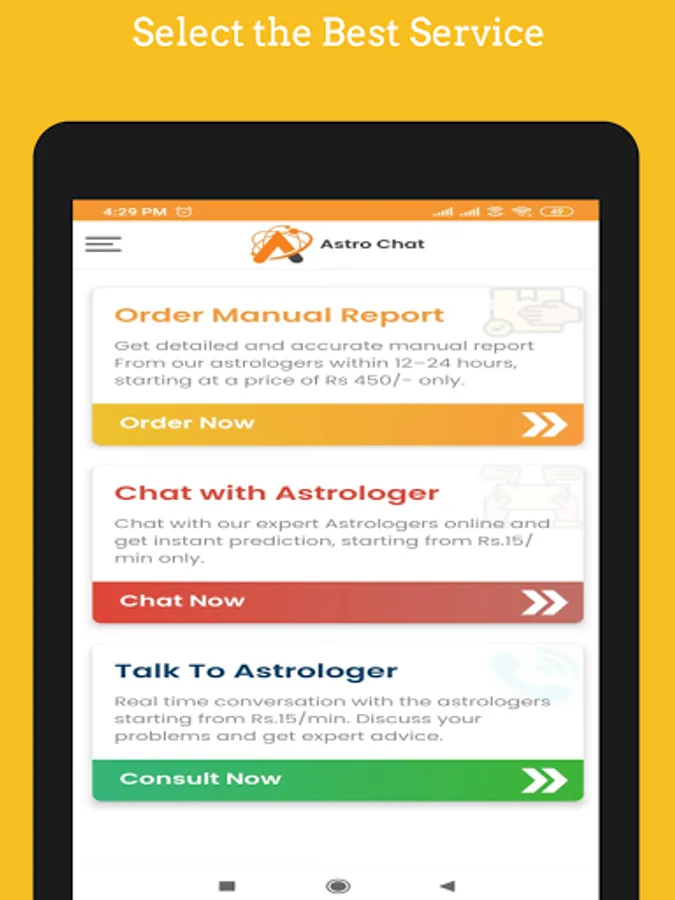 Download India's Best Astrology App and Chat with Best Astrologers Online Now! First Consultation Starts At Rs.99 Only. Yes, You can start Chat With Best Astrologers At Rs.99. You will Get 51% Extra Talktime on your First Recharge.