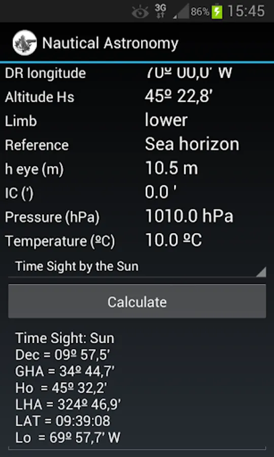 Take the sextant and shoot the Sun or the North Star. Practice with it using the old methods of astronomical navigation, and let this app do the calculations for you!