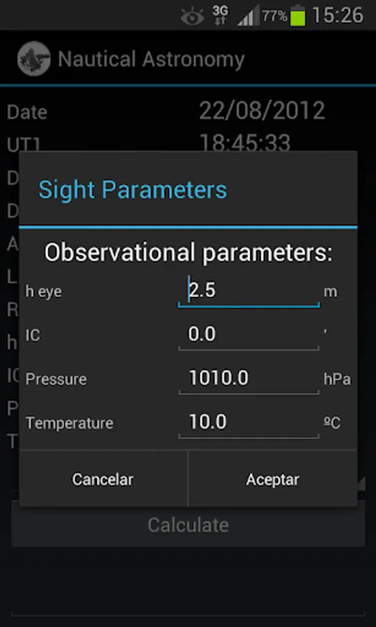 1 - Tap on Date, Time, DR, Hs and sight parameters to enter the data.