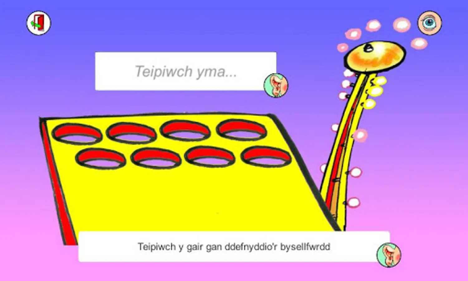 Beth am wella eich sgiliau sillafu Cymraeg drwy gymorth atyniadau’r ffair? Dyma ap ar gyfer plant Cynradd. Mae yma nifer o gartwnau cyffrous sy’n gwneud y dysgu’n hwyl. Dewch i weld y llithren lithrig a’r stondin saethu’r hwyaid sy’n creu’r awyrgylch! Mae’r tair lefel yn dilyn yr un patrwm ond mae’r geiriau’n mynd yn anoddach wrth i chi symud ymlaen. Ym mhob lefel, cewch gyfle i weld y gair yn gyntaf a chlywed sut mae ei ynganu’n gywir. Yna, rhaid i chi ddewis llythrennau er mwyn llunio’r gair. Yn olaf, rhaid teipio’r llythrennau eich hunan.
