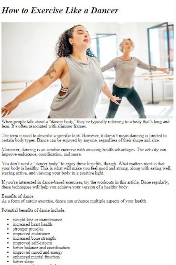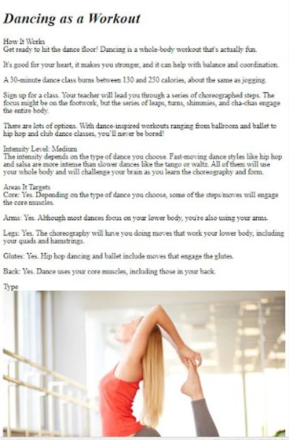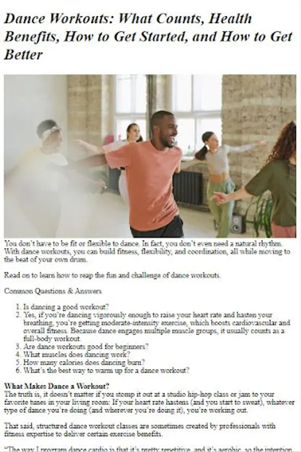 But fitness dancing is more than just a workout – it's a celebration of movement, positivity, and embracing the joy of being active. Our app delves into the benefits of dance-based fitness, giving you a deeper understanding of how it can elevate your physical and mental well-being.