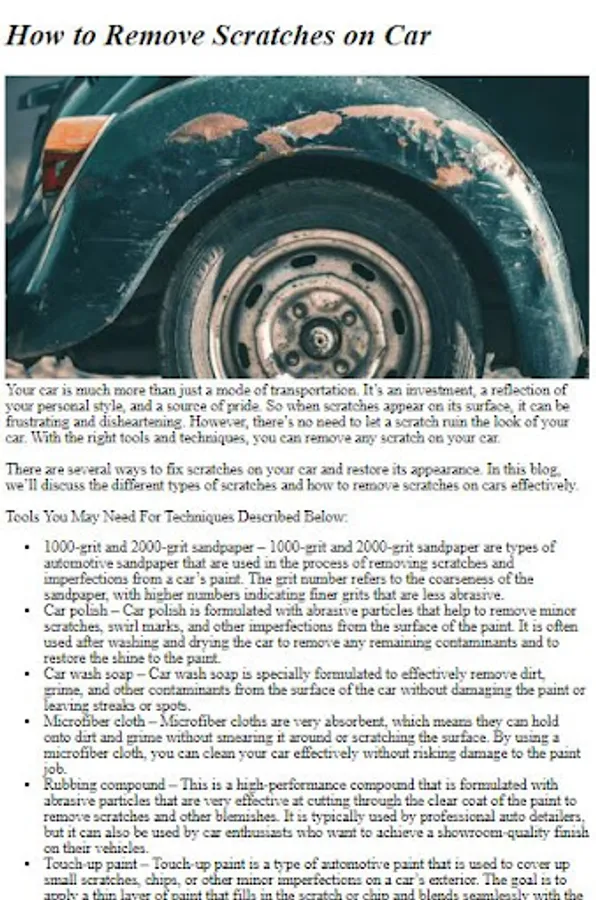 Your car, your pride and joy, deserves to flaunt its beauty without any blemishes. But alas, scratches are the uninvited guests that sometimes grace our car's surface. Fear not, for this guide is your secret weapon to bidding those unsightly scratches adieu. From simple DIY fixes to tips for tackling tougher marks, get ready to restore your car's shine and show those scratches who's boss!