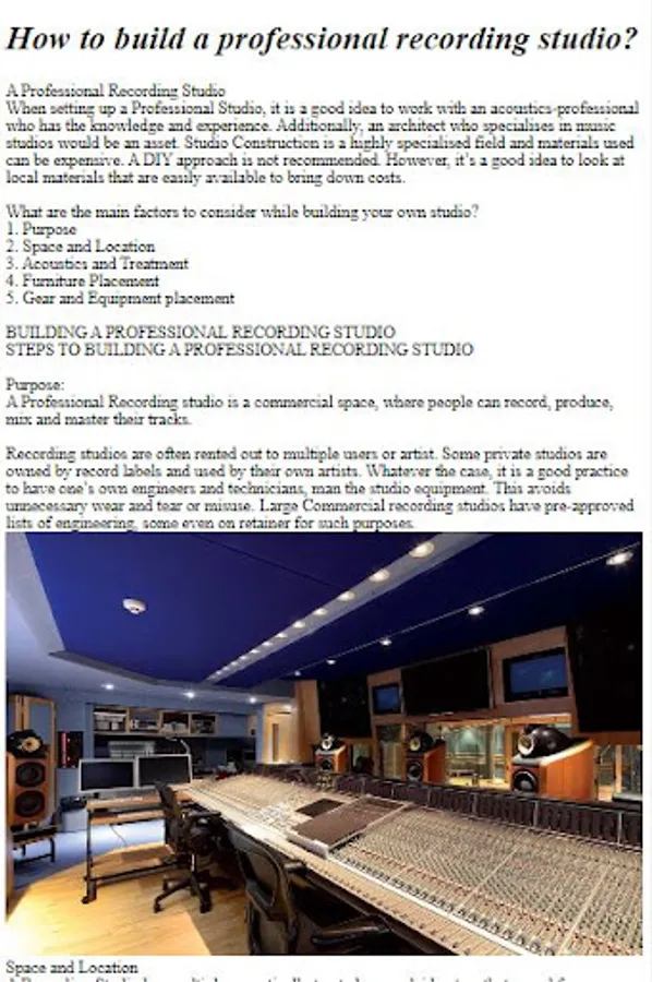 Ready to turn your musical dreams into reality? Get ready to design and set up your very own recording studio with our comprehensive guide, packed with expert insights and techniques. Whether you're an aspiring musician, podcaster, or content creator, this app is your key to crafting a space that captures your sound perfectly.