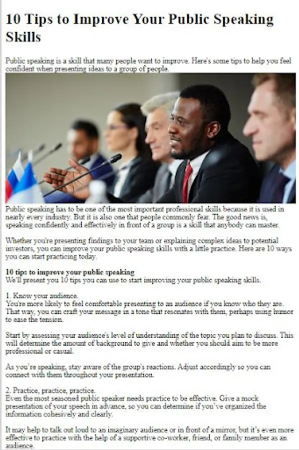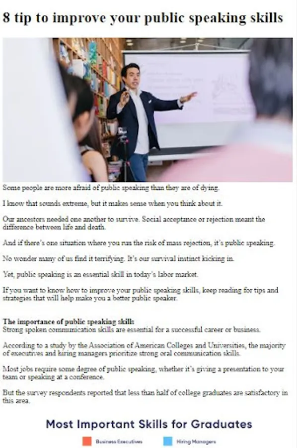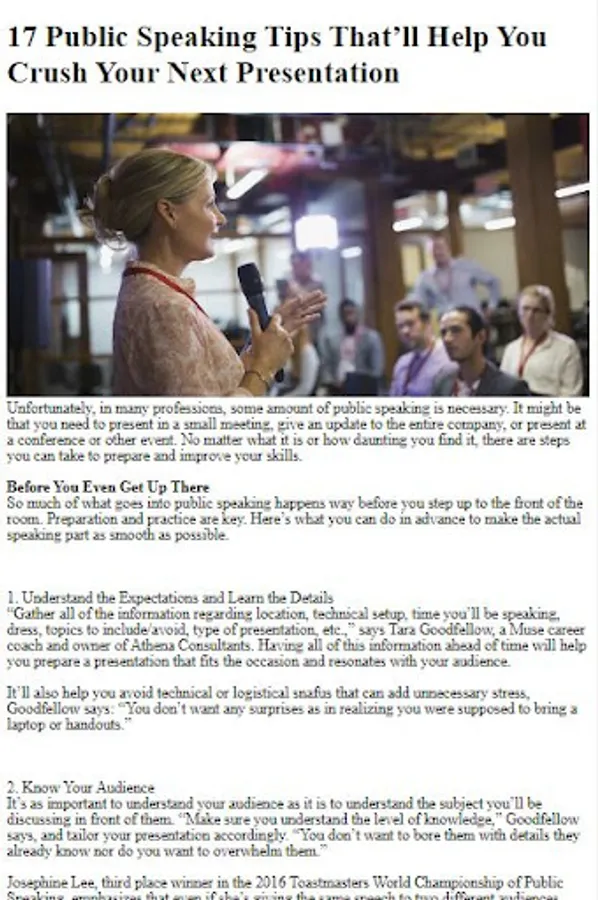 📚 Tailor Your Content: Whether you're presenting in a boardroom, on a stage, or online, our guide offers tips for tailoring your speech to different formats, ensuring you're a dynamic speaker in any setting.
