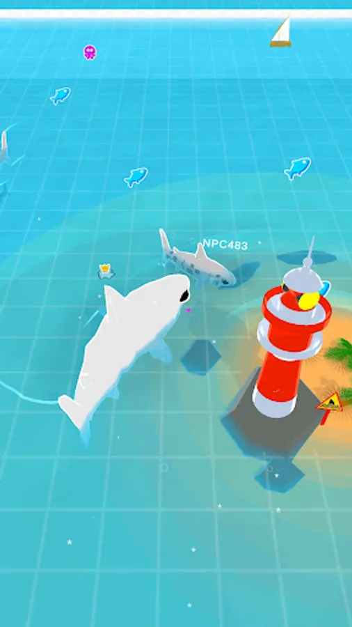 control a shark in search of food to become a megalodon, but beware: other sharks will want to take a little piece of you :)