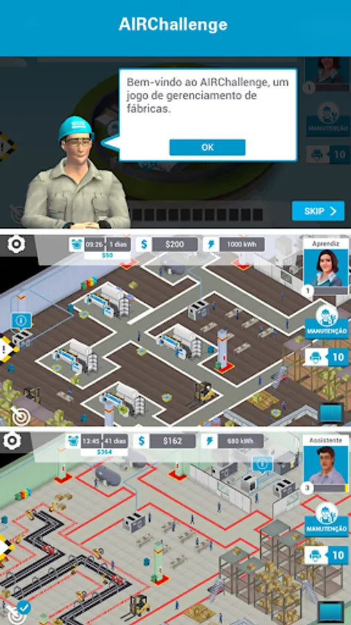 O aplicativo traz o AIRChallenge, o primeiro game de gerenciamento de fábricas, no qual você aprende jogando. Tudo isso reunido em um único local, com informações estratégicas inseridas em um contexto lúdico e divertido.