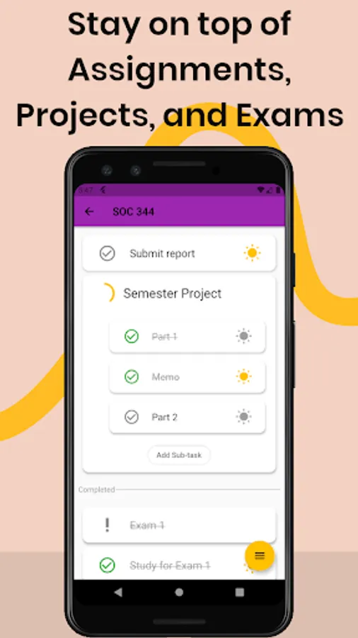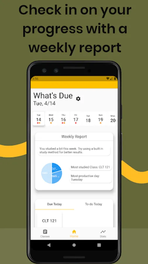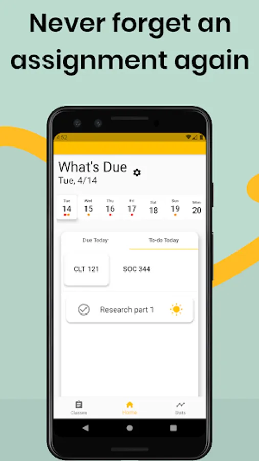 • See when all your tests, assignments, and projects are due for the whole week