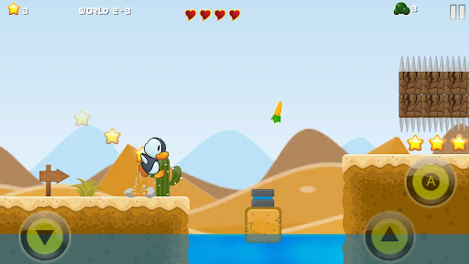 In this adventure game, The little penguin will run and collect coins, power-up to fight with bosses.