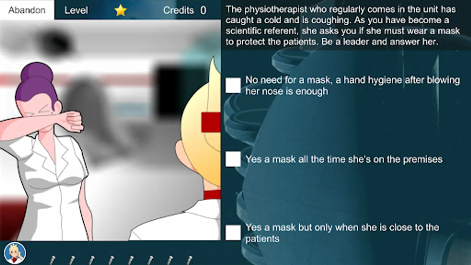 The objective of the I.control game is to improve the knowledge of standard precautions for healthcare professionals and patients but also to promote good practices, all in a fun way. Hand hygiene, respiratory hygiene, exposure to blood and biological products, clothing and equipment are the topics covered.