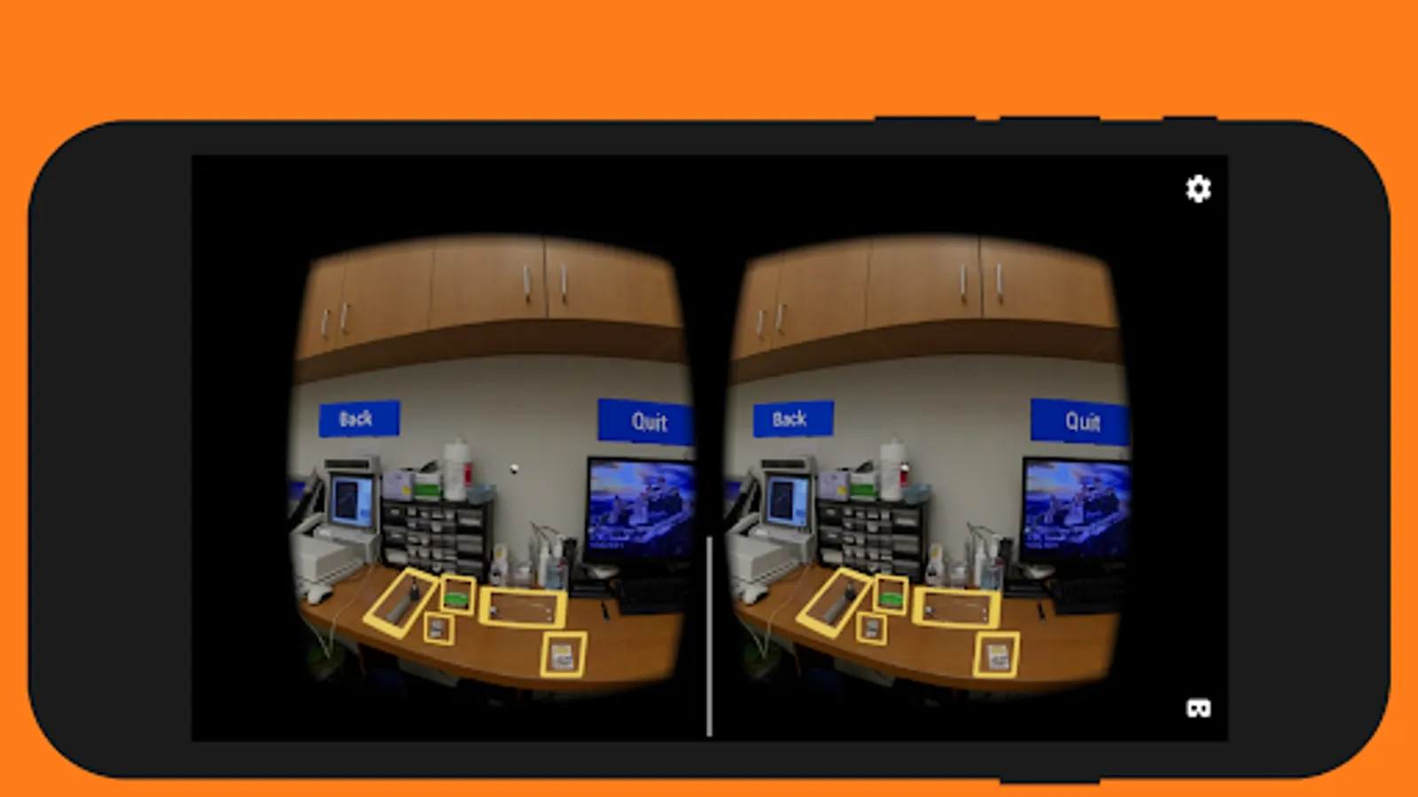 In the application, a simulation occurs where the student must help a patient with their hearing aid. The application’s environment is created from 360-degree videos and embedded with interactive branching stories. The video includes actors/actresses that perform the scripted scenario. During the application, the video pauses and presents the student with choices to select from. Based on the selection, the student progresses in the scenario or is informed they made an error in their selection and returns to an earlier point in the simulation.