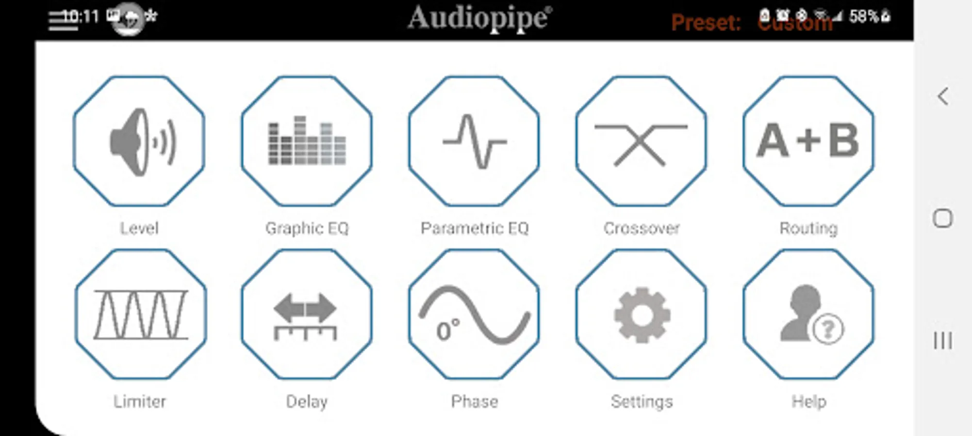 AudioPipe DSP is an app that allows you to control the series of Digital Signal Processors created by AudioPipe.