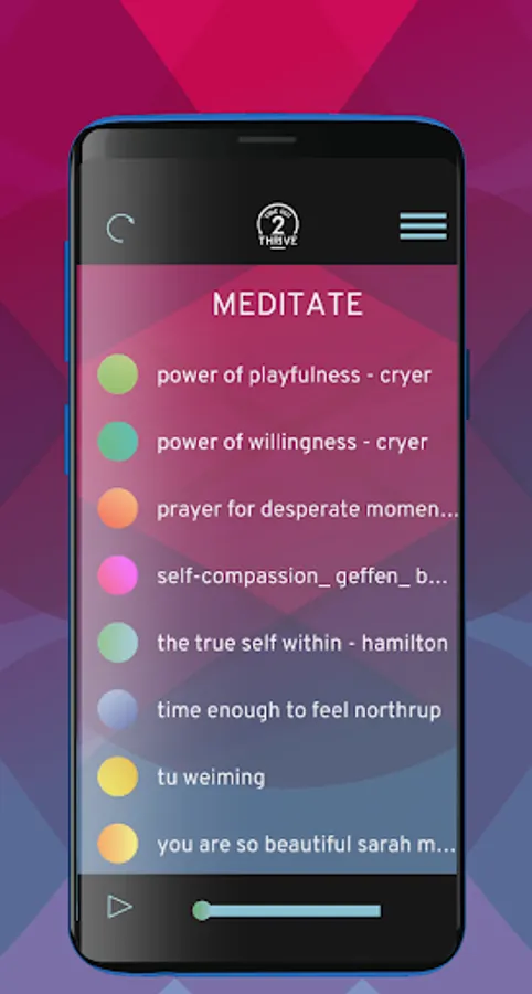 This TimeOut2Thrive app has been created to give you evidence-based and real-time stress management tools, combined with powerful stress-releasing experiences using inspirational music, stunning videos of breathtaking nature, and calming meditations, and we’ve even created a place for you to simply laugh and let off some steam, all at your fingertips.