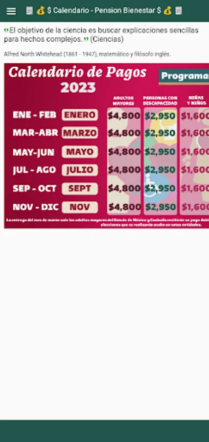 Check the dates and days on which your Help is Dispersed, this APP is just a CALENDAR, as well as the locations of the branches in the States of the Country. Receive notifications when it disperses as well as event news.