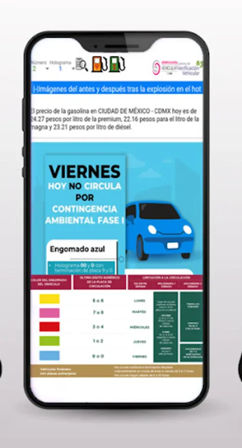Also check the price of gasoline ⛽ by delegation, 🚗 Select your license plate number and your hologram number and find out what days you DO NOT circulate, simple and easy.