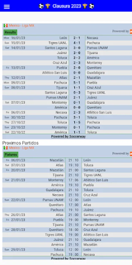 Simple application that shows you the results of the Liga-Mx matches, knows the location of the stadiums, and listens to your Team's Anthem, receives notifications of the goals of each match.