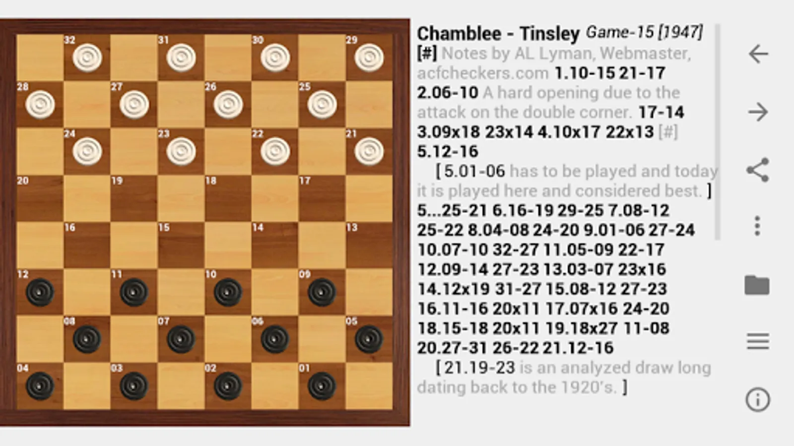 "Aurora Draughts" is a well-known checkers database program with a built-in playing and analysing module that is incredibly convenient and easy to use. Many years of development has made this program useful and easy to understand for both experienced and amateur players, now it is available for Android platform.