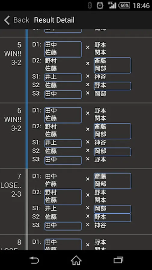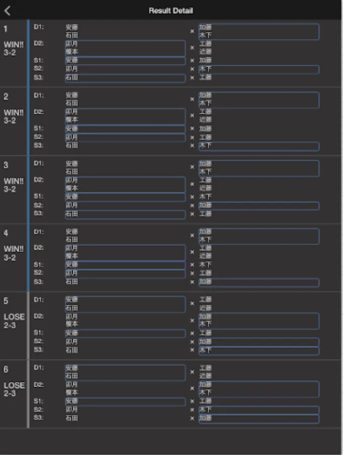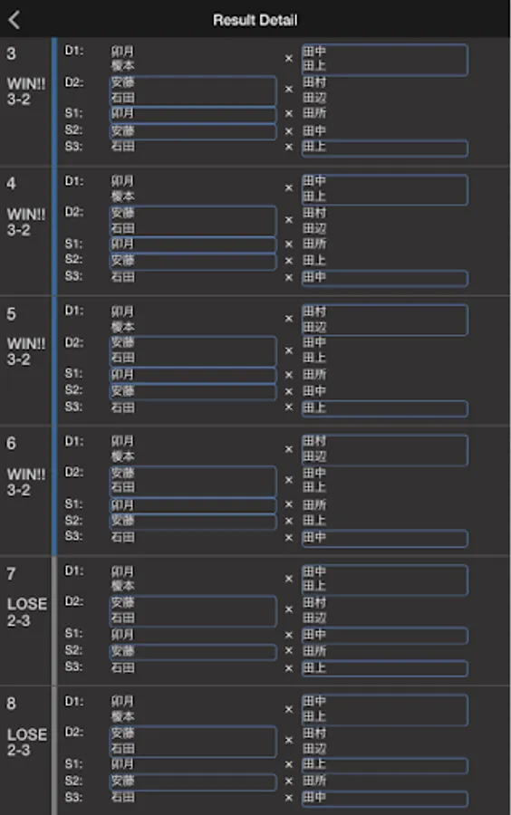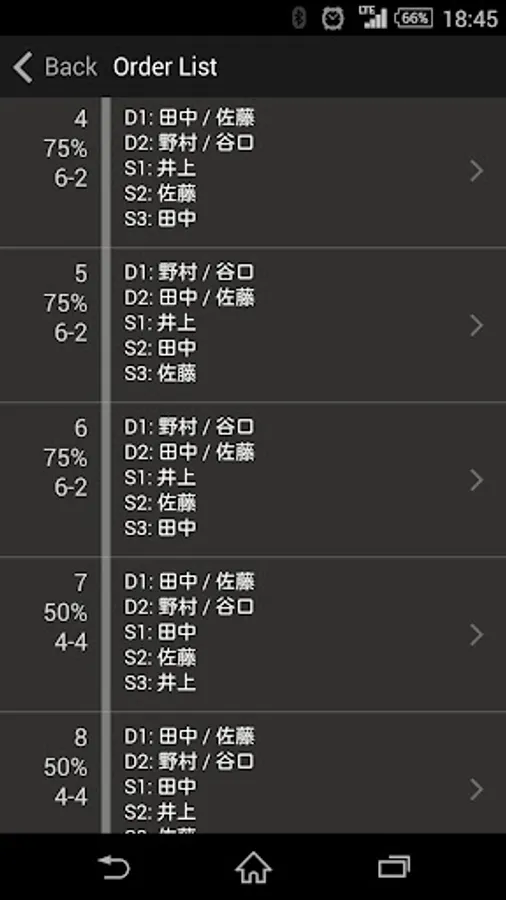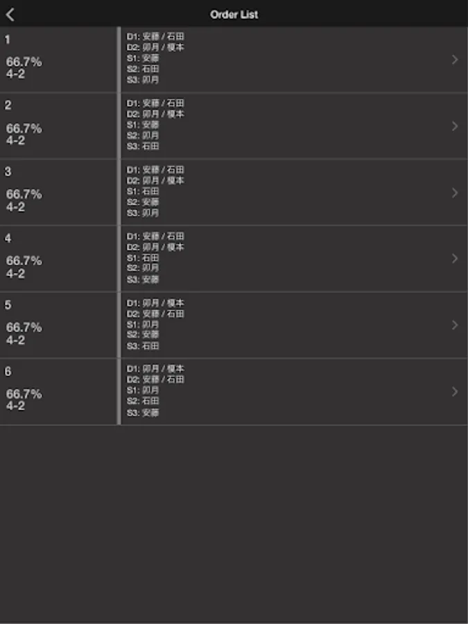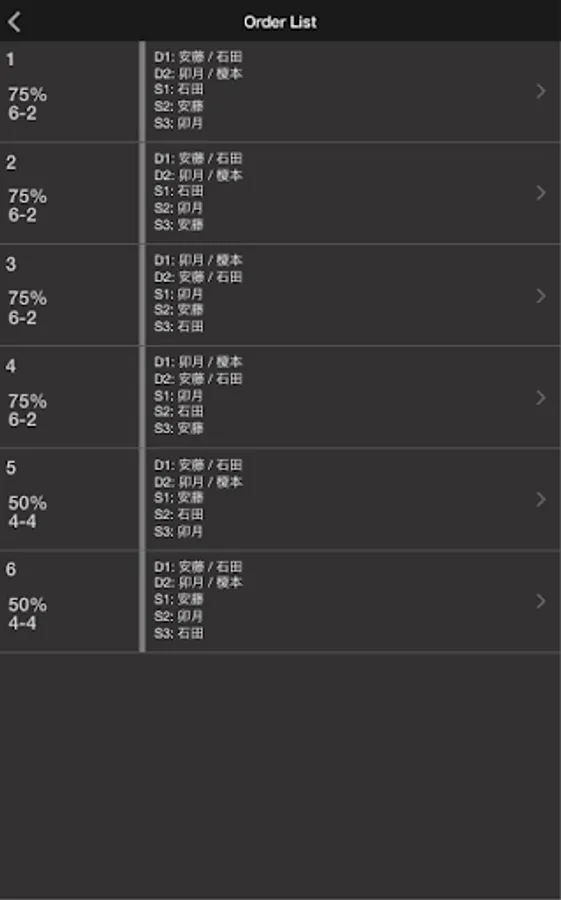 And singles and consider mode only order so as not played doubles with the same players in a row, I can display the results in consider mode the whole combination.